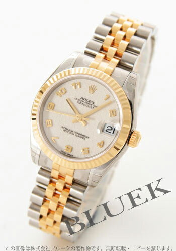 【5年保証付】週末限定特価★ロレックス Ref.178273 デイトジャスト YGコンビ ホワイト(ホリコンピューター) ボーイズ価格: 597,607円レビュー評価: 0.0 レビュー数:0 お問合せ 0120-766-444(平日10時?18時)よくある質問集 →詳細を見る幾何学的な模様が施されてる文字盤が特徴的。12時位置にはロレックスの象徴である王冠ロゴが輝き、3時位置には拡大レンズ付の日付表示も装備。実用面でも満足できます。しなやかなラインを描く5連ブレスはシルバーとイエローゴールドのコンビで華麗に手元を飾ります。大きく開くバックルは着脱も簡単。バックルの留め具にはロレックスクラウンを。繊細なこだわりが感じられます。裏蓋に貼られた保護シールはグリーンのシールに書かれた本物の証としてのRefナンバーを保護するために貼られています。商品番号Ref.178273 Aムーブメント |