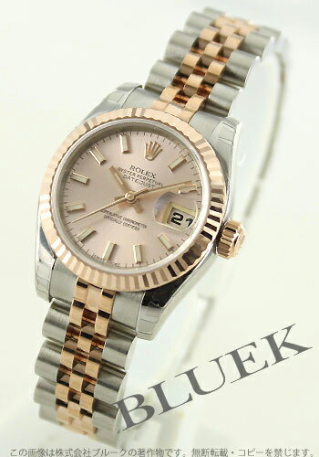 【5年保証付】週末限定特価★ロレックス Ref.179171 デイトジャスト PGコンビ ピンク レディース価格: 569,100円レビュー評価: 0.0 レビュー数:0 お問合せ 0120-766-444(平日10時?18時)よくある質問集 →詳細を見るピンク文字盤に蛍光塗料を施したピンクゴールドの指針、バーインデックスを配置。12時位置にブランドロゴ、3時位置に日付表示、6時位置にクロノメーターであることを示す刻印。艶ありのシルバーケースにピンクゴールドのリューズを使用。片開きバックル部分にはブランドロゴを刻印。艶なしのシルバー&艶ありのピンクゴールドブレス。商品番号Ref.179171ムーブメント自動巻きクロノメーター(オートマチック)カラー文字盤:ピンクケース:シルバーベゼル:ピンクゴールドベルト:シルバー&ピンクゴールド素材ピンクゴールド、ステンレス |